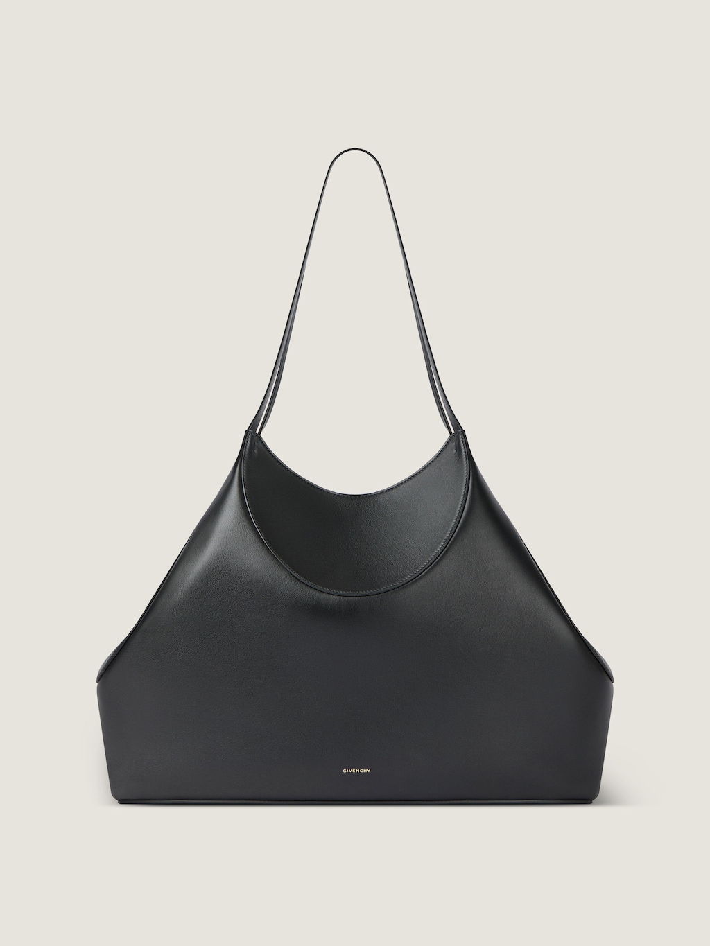 Tote bag media in morbida pelle di vitello fiore, forma geometrica, chiusura magnetica, manici in pelle per una portabilità a spalla, firma GIVENCHY goffrata sul davanti e firma GIVENCHY Paris all’interno, dettagli metallici finitura oro. Prezzo € 2.500 per info e per acquistarla, clicca qui.