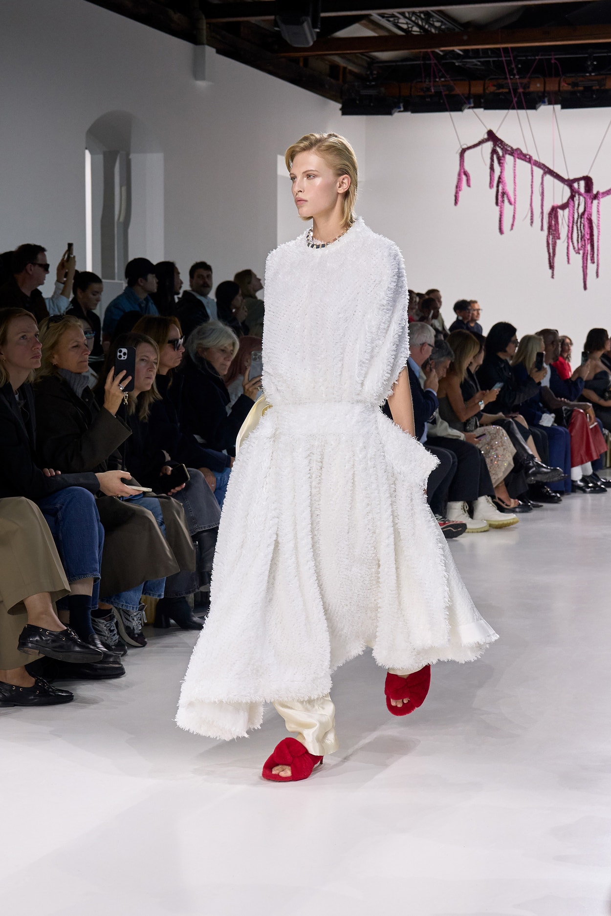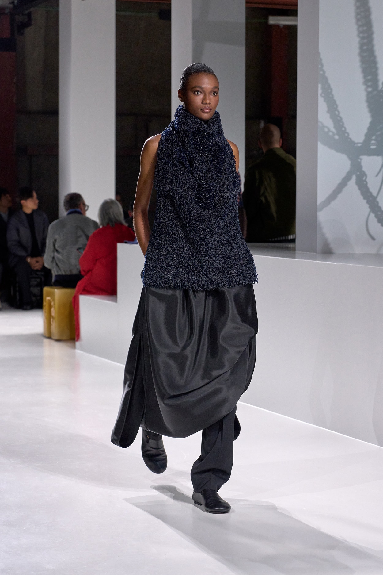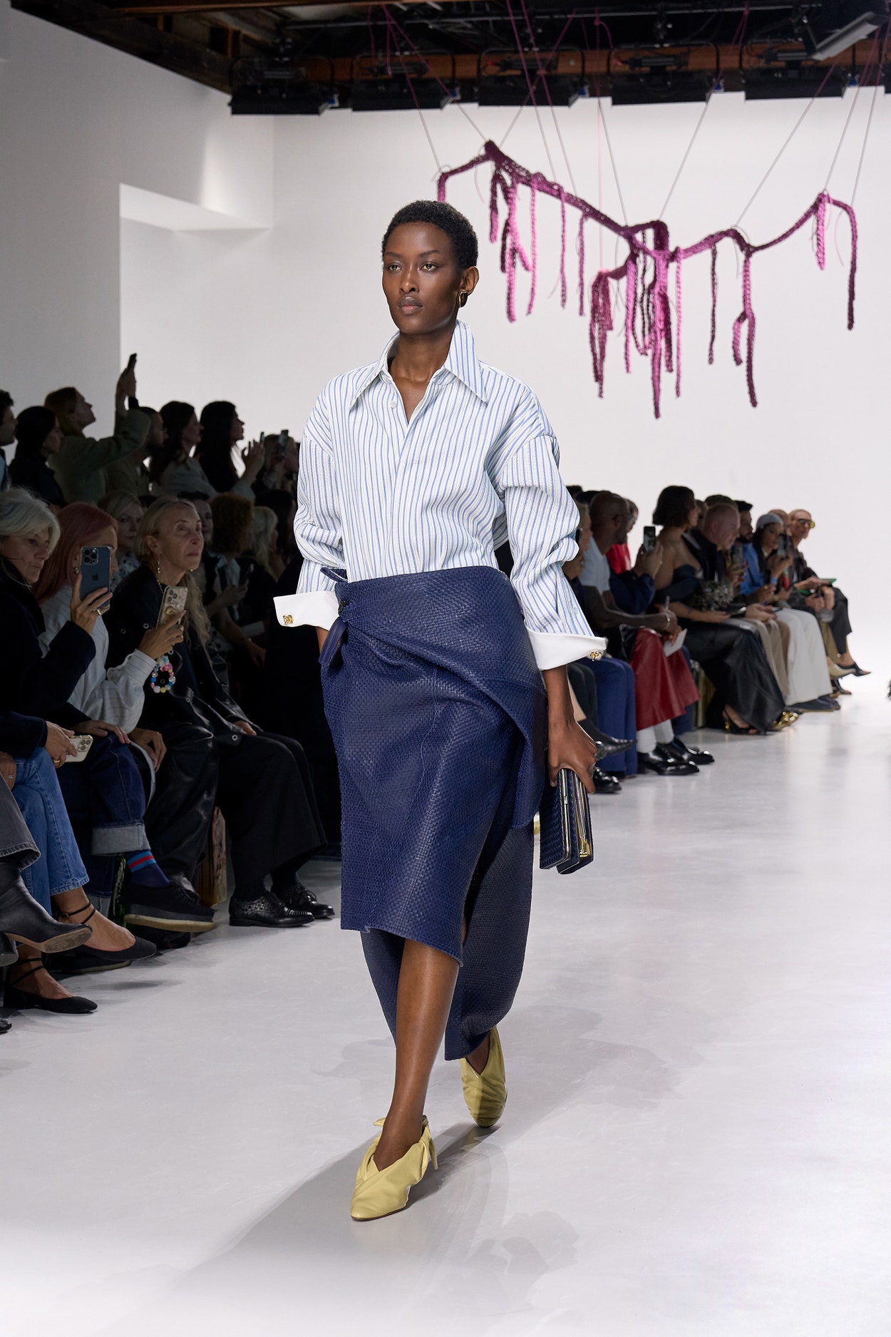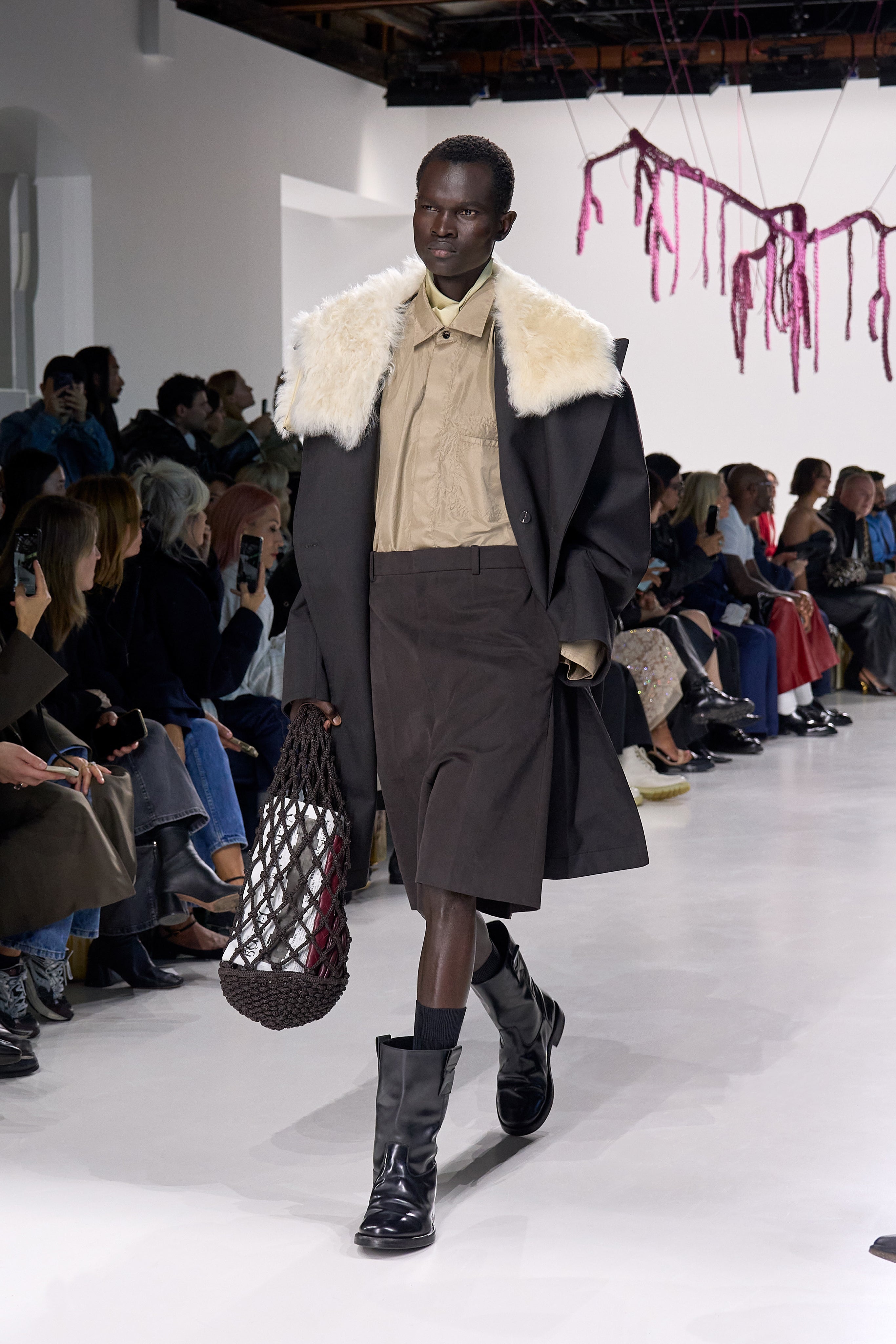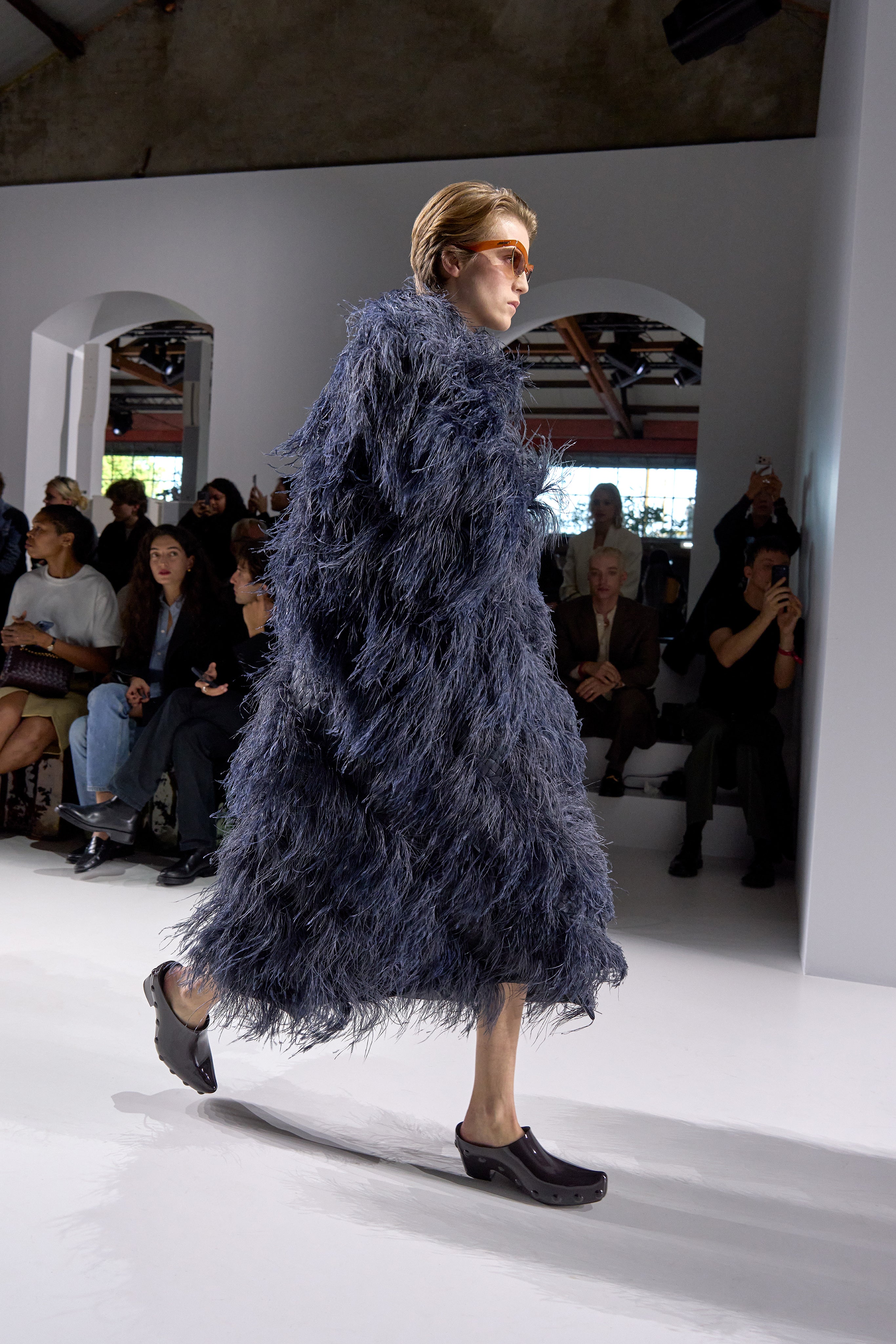Summer 2026 reinterpreta il tema chiave di ‘soft functionality’ da sempre parte dell’identità di Bottega Veneta e del suo iconico Intrecciato. La collezione celebra la meticolosa lavorazione artigianale della maison con giacche e gonne leggere dal movimento fluido, realizzate in vetroresina riciclata, insieme a un mantello in nappa frangiata, che ha richiesto oltre 4.000 ore di lavoro. Linee scultoree incontrano texture ricche e materiche, con nappine, volant e dettagli soffici. I tessuti estivi, leggeri, si combinano a costruzioni sartoriali rigorose, modellate con la precisione e la disciplina della sartoria maschile tradizionale. Le borse iconiche vengono reinterpretate in nuove forme e proporzioni, mentre tra le novità spiccano la morbida borsa Squash, una clutch da sera con nappine e una tote dalla struttura rigida.