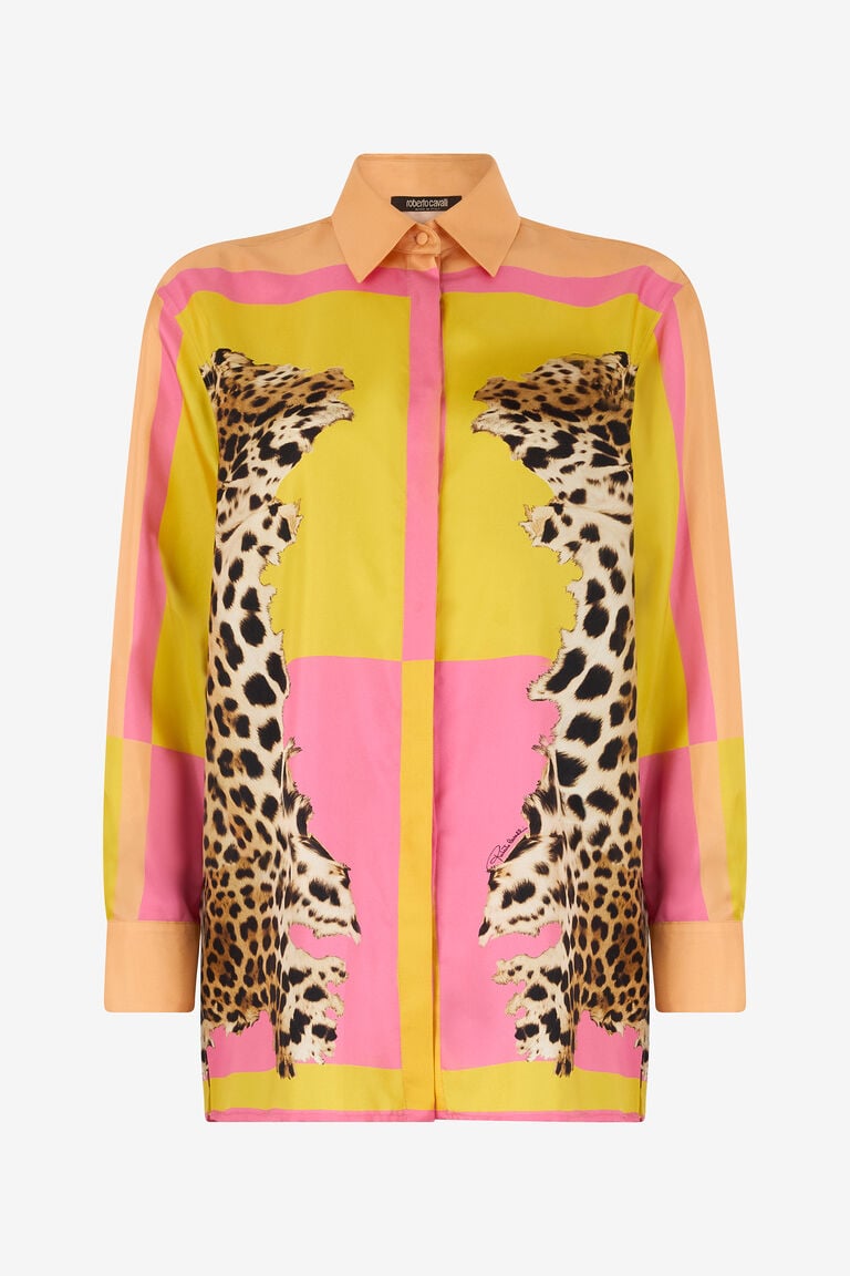 ROBERTO CAVALLI – CAMICIA IN SETA CON STAMPA CAVALLI POP