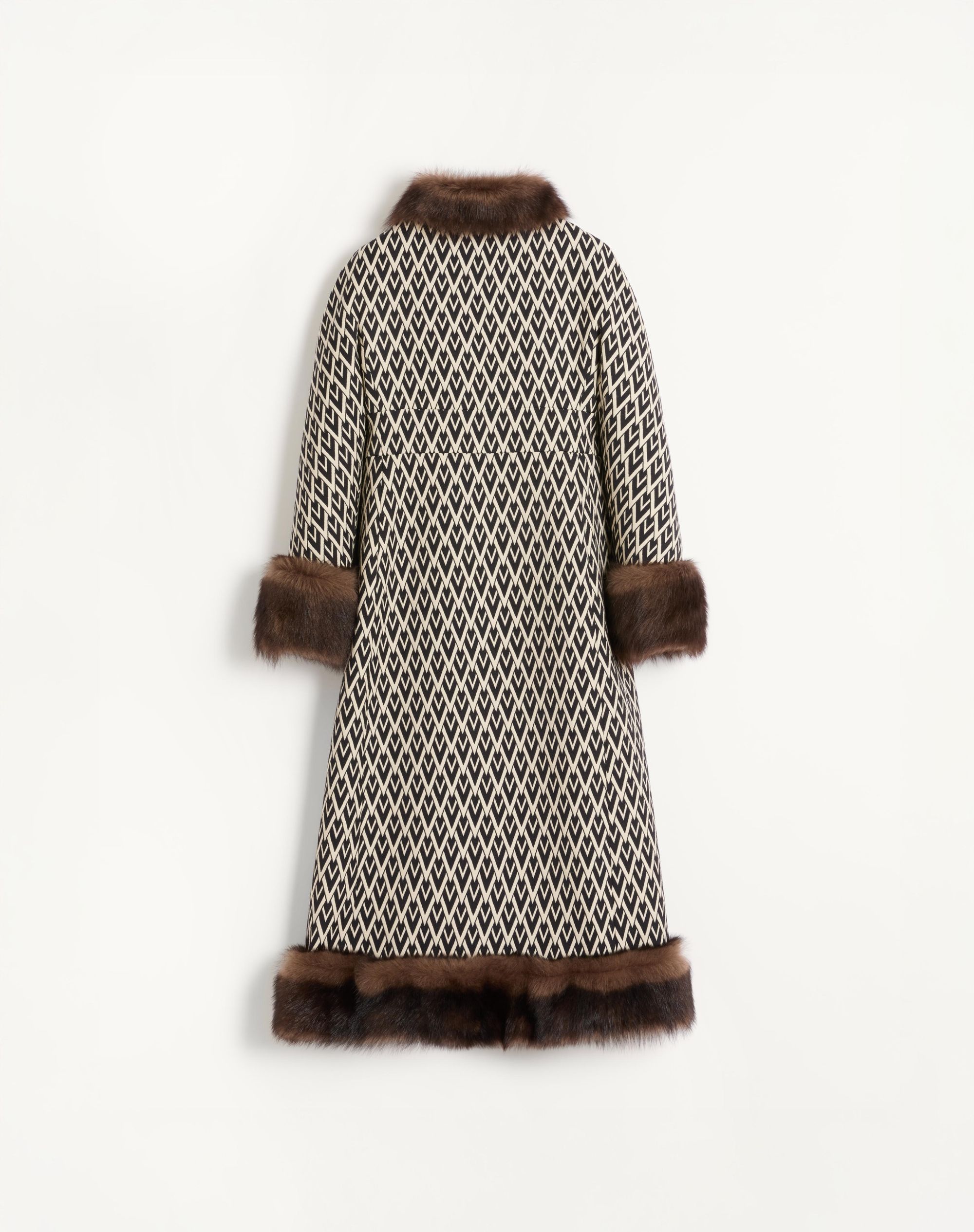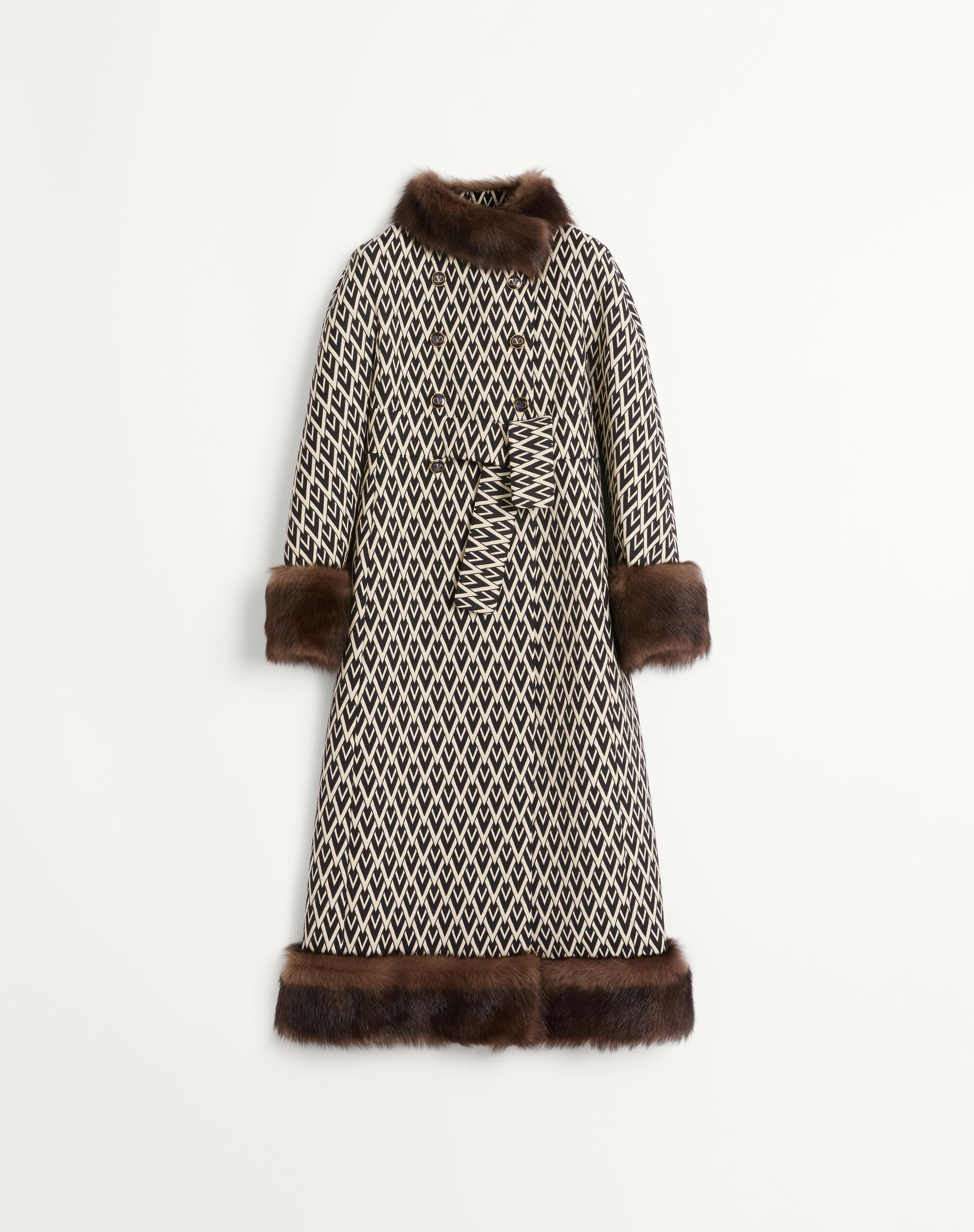 Cappotto in Jacquard Toute la V, inserti in shearling, cintura in vita, Toute la V Jacquard allover. Prezzo scontato € 4.740 per info e per acquistarlo, clicca qui.