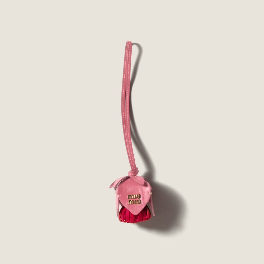 Gli elementi distintivi del guardaroba Miu Miu diventano preziosi accessori da legare alle borse, in un gioco di combinazioni vivaci e personali. Ispirato alla celebre Miu Ballet, questo trick in pelle arricchisce il design della borsa di un dettaglio unico. Prezzo € 510 per info e per acquistarlo, clicca qui.