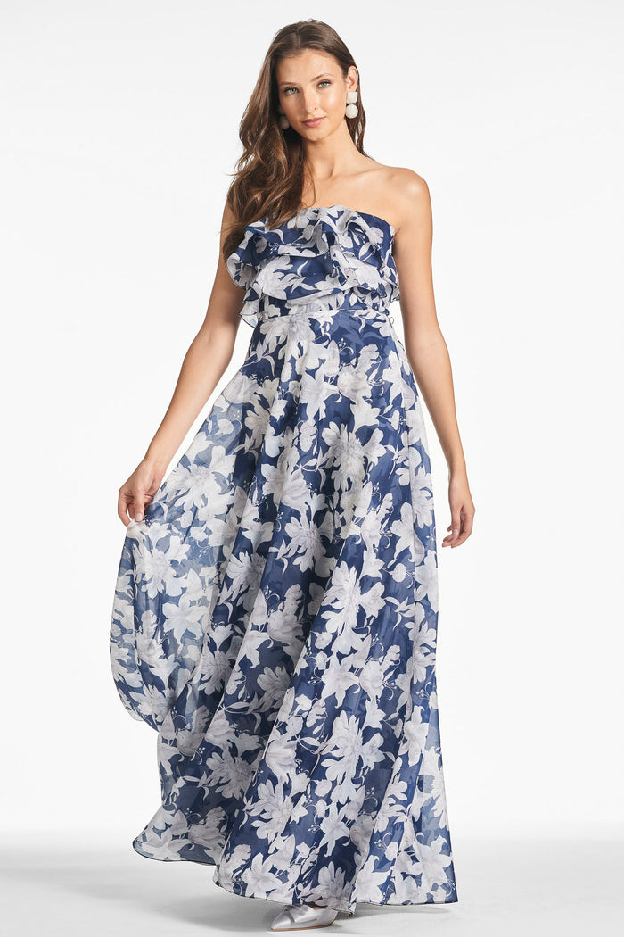 Giovanna è l’abito da ballo che lusinga nei posti giusti. Caratterizzata da una stampa floreale all-over, aggiunge un tocco di qualcosa di speciale a una silhouette altrimenti classica. Opta per un trucco naturale e indossa un tocco di pochette colorata (On the Rocks in rosso ciliegia, forse), e il tuo prossimo matrimonio, gala o evento avrà un look perfetto. Prezzo € 1.050 per info e per acquistarlo, clicca qui.