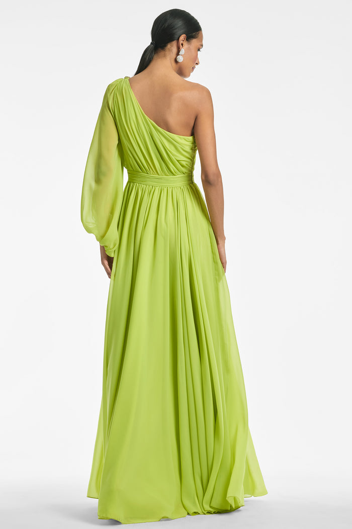 Fai una dichiarazione con il nostro abito Makayla. Caratterizzato da un design monospalla e arricciatura diagonale sul corpetto con vita fasciata, questo splendido abito chartreuse è perfetto per ogni occasione speciale. La spilla impreziosita da cristalli aggiunge un tocco glamour per completare il look. Prezzo € 1.300 per info e per acquistarlo, clicca qui.