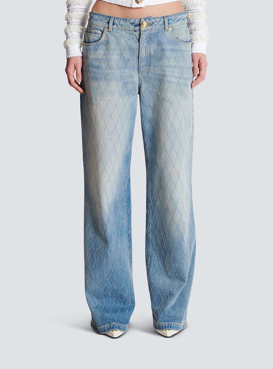 BALMAIN – JEANS DIRTTI IN DENIM CON MOTIVO A ROMBI